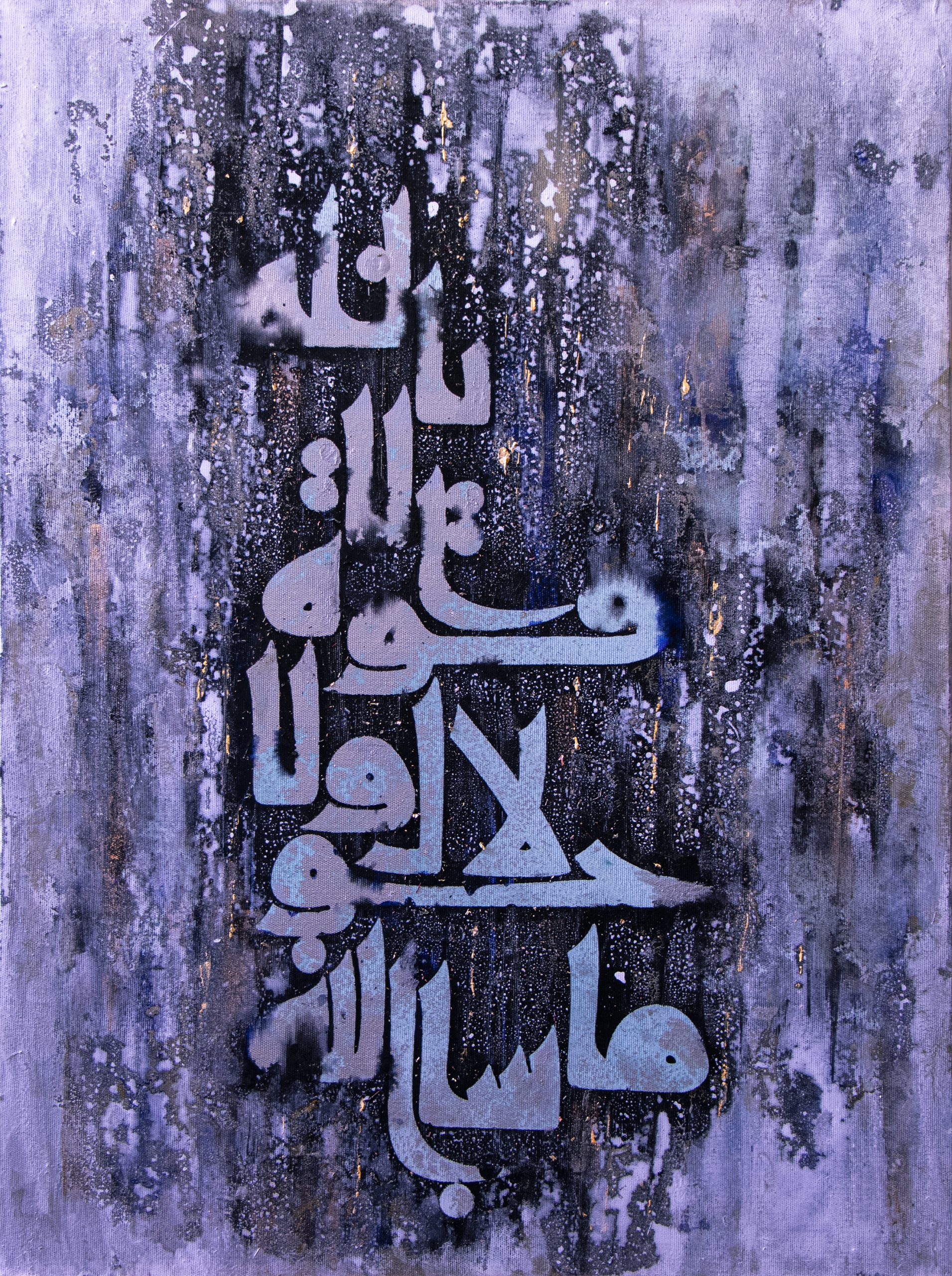 - Technique: paint and oil and silver foil and Composition of materials on the canvas